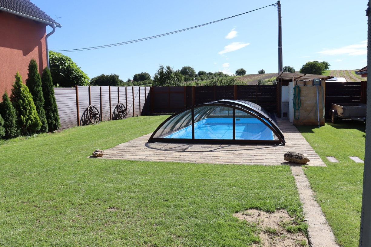 Představte si ráno bez ruchu města, jen s kávou na vlastní zahradě. Odpoledne s přáteli u grilu, večer se sklenkou vína pod hvězdami. A teď si k tomu přidejte vlastní bazén se slanou vodou a filtračním systémem, který už je na pozemku vybudovaný – stačí se jen ponořit a užívat si. Díky délce pozemku máte dostatek soukromí i prostoru – pro dům, zahradu, bazén, relax zónu nebo třeba menší vinohrad či stylový sklípek.